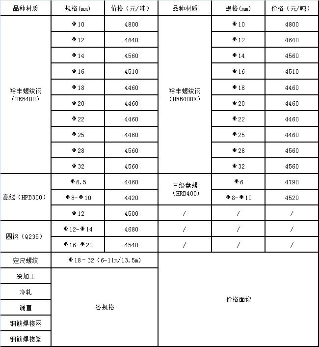 8月18日广州市番禺裕丰钢铁有限公司价格表