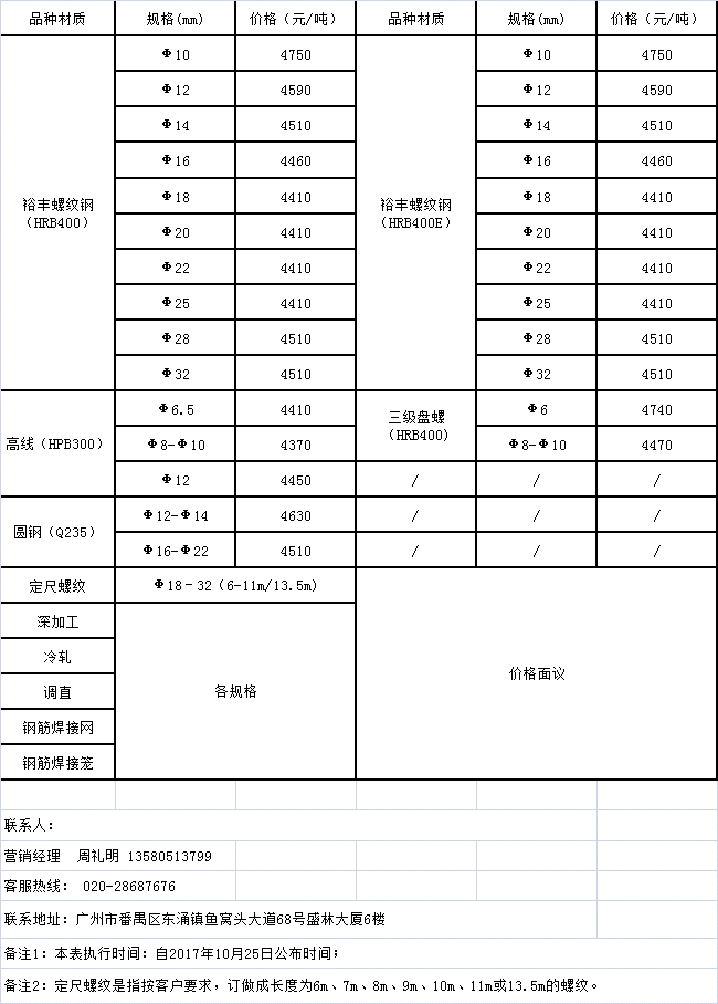 10月25日广州市番禺裕丰钢铁有限公司价格表