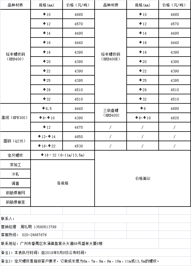 5月9日广州市番禺裕丰钢铁有限公司价格表