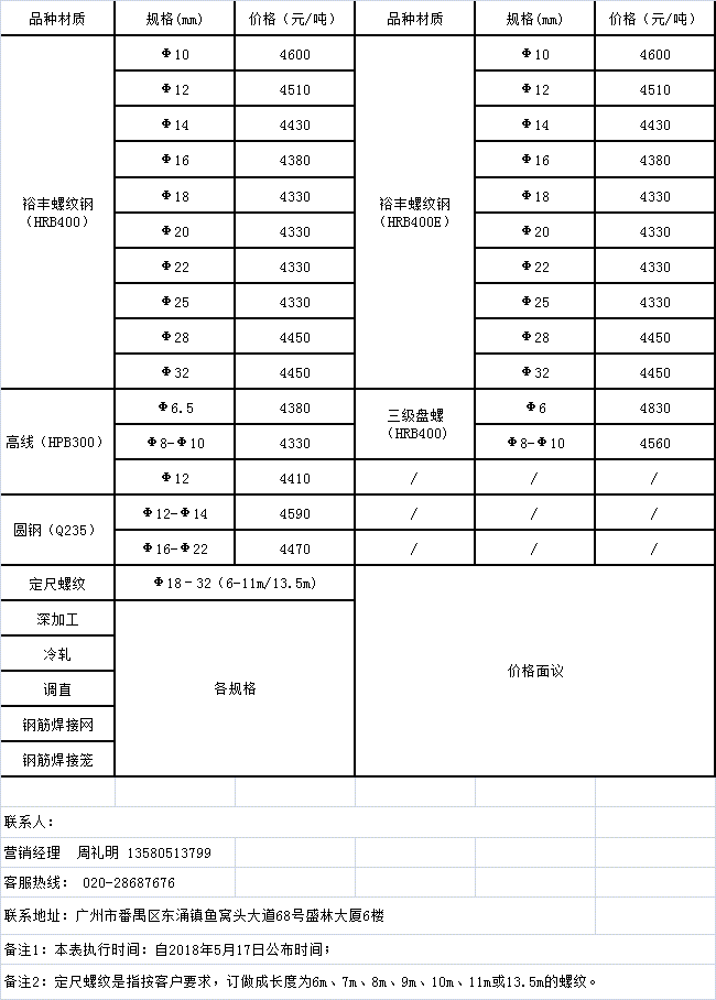 5月17日广州市番禺裕丰钢铁有限公司价格表